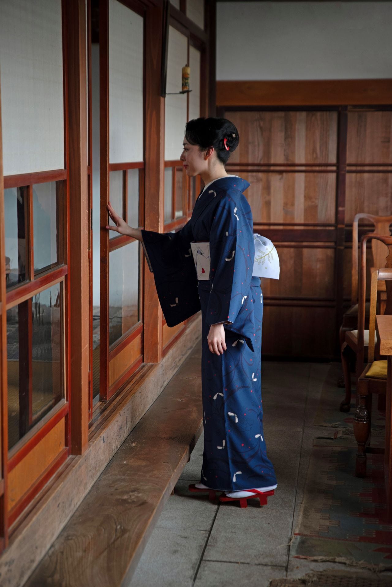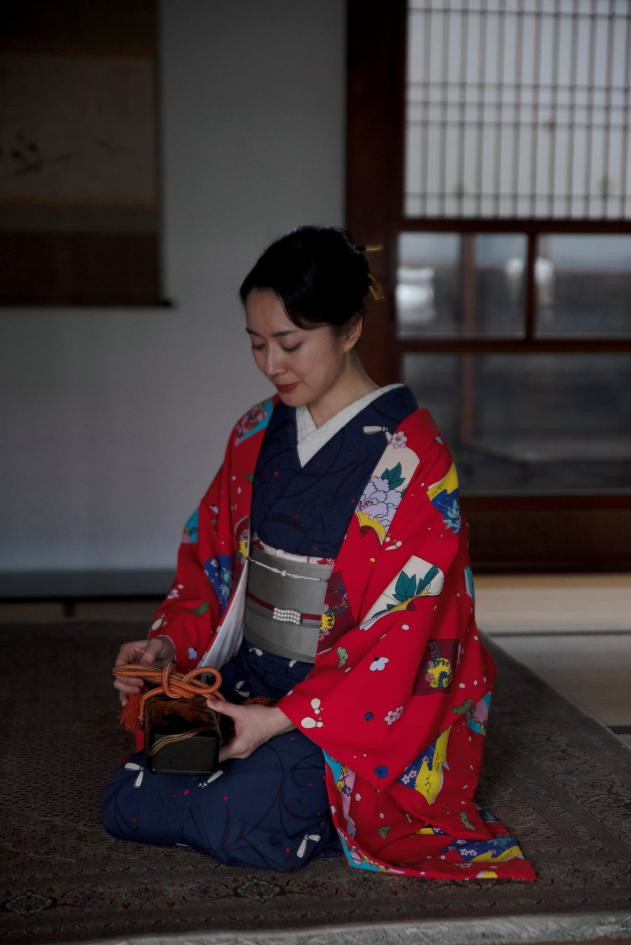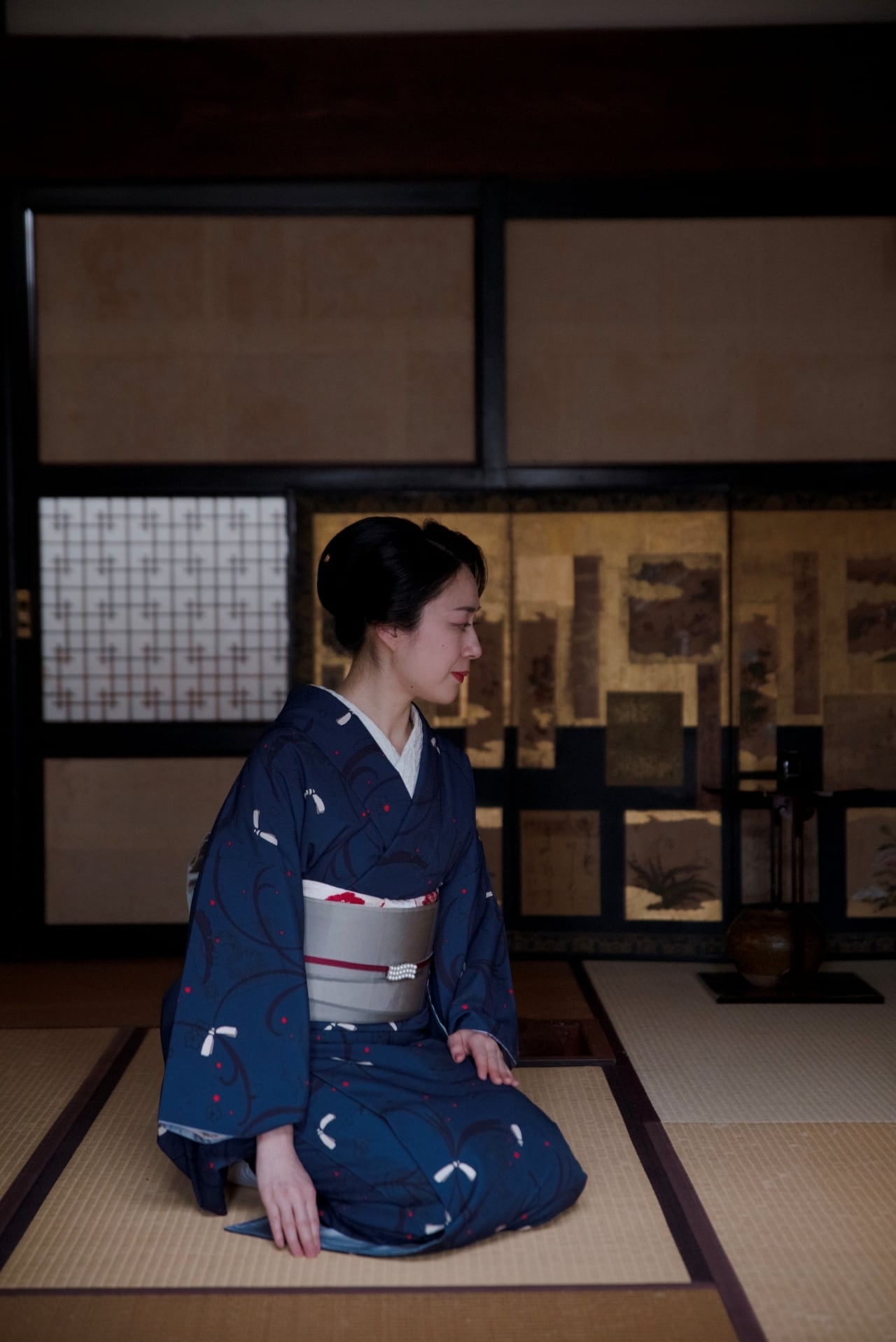 濃色の帯を合わせてシックに