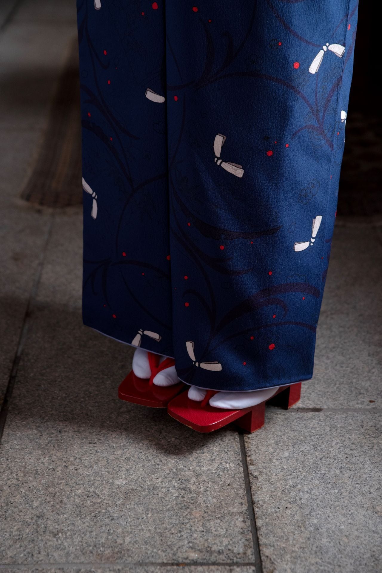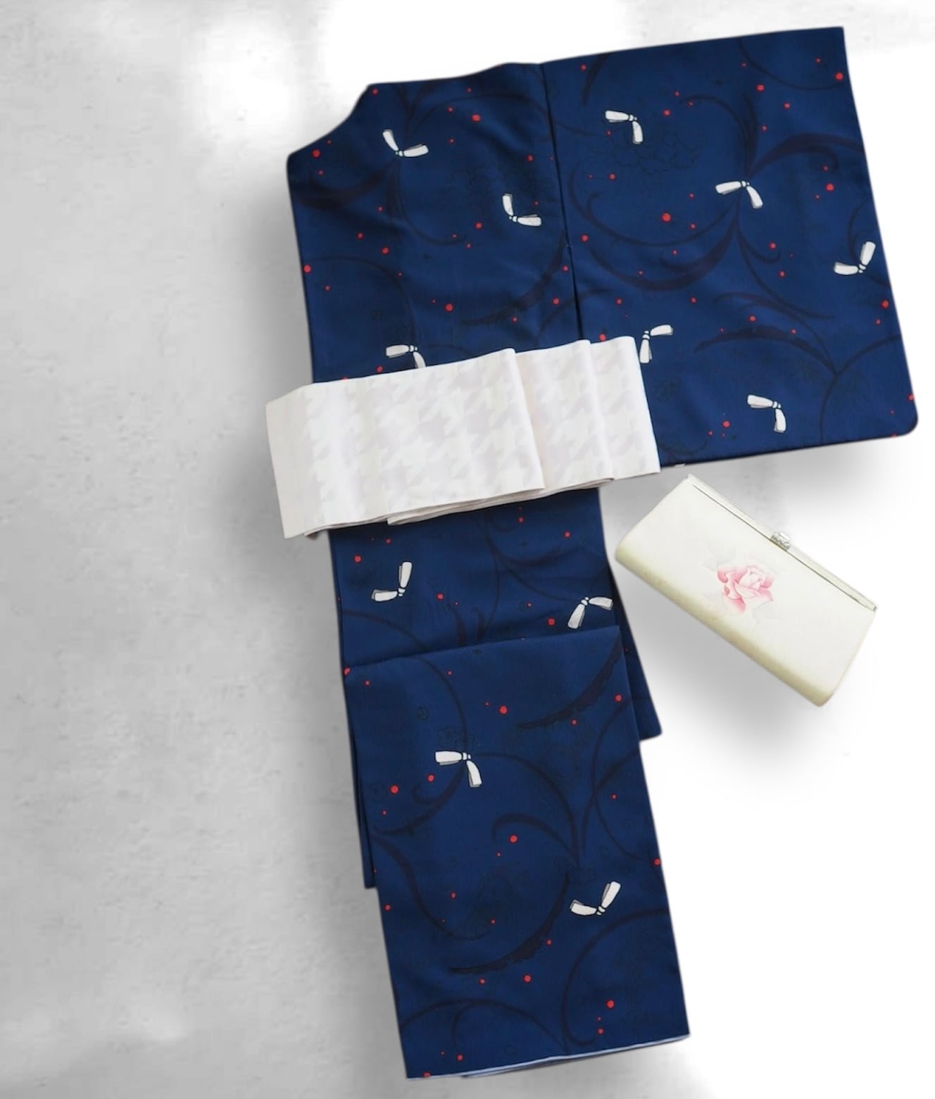 古くから尊い色とされてきた深い品のある青色に、緋色の露がさり気ないアクセントになっています。