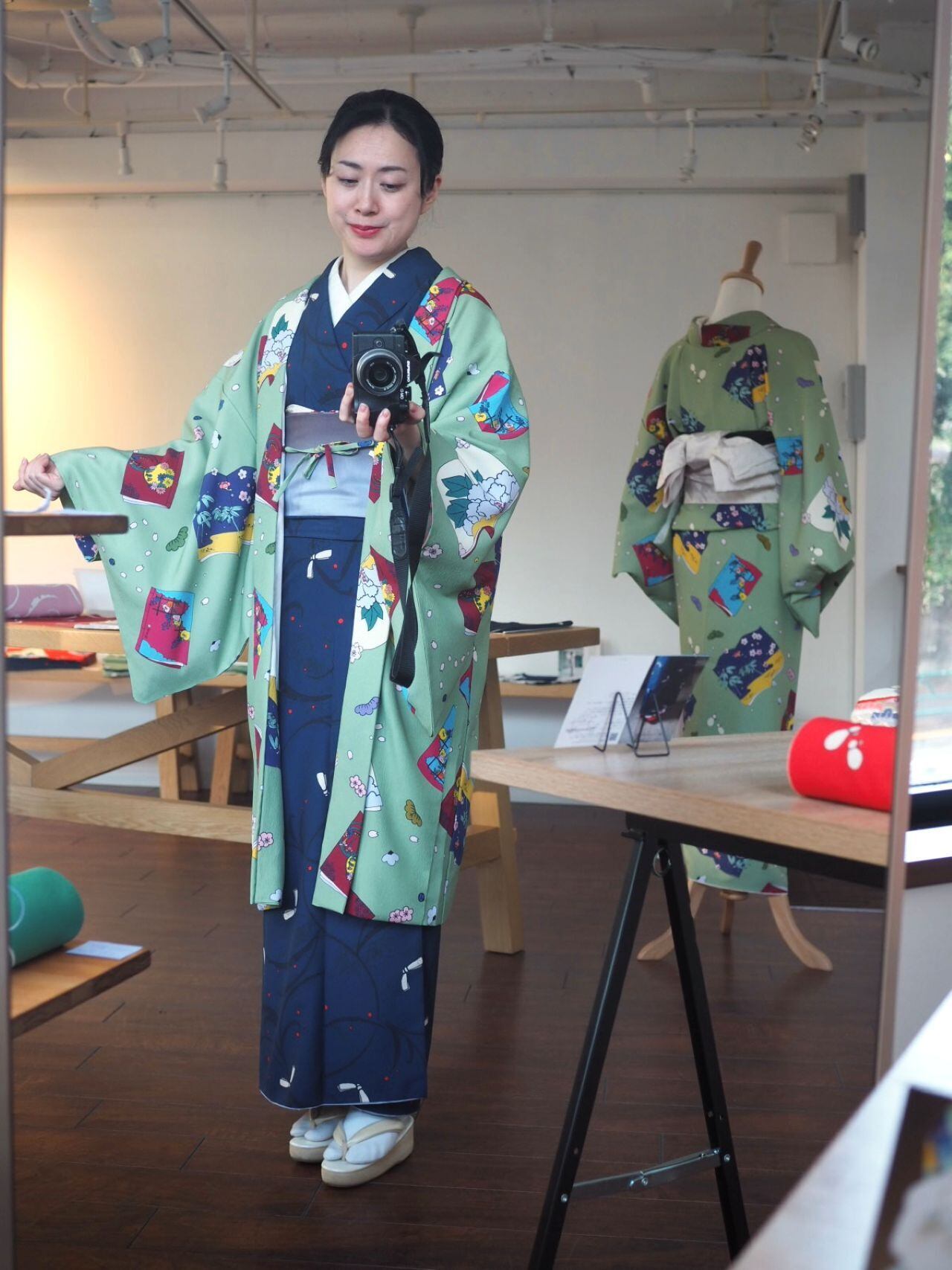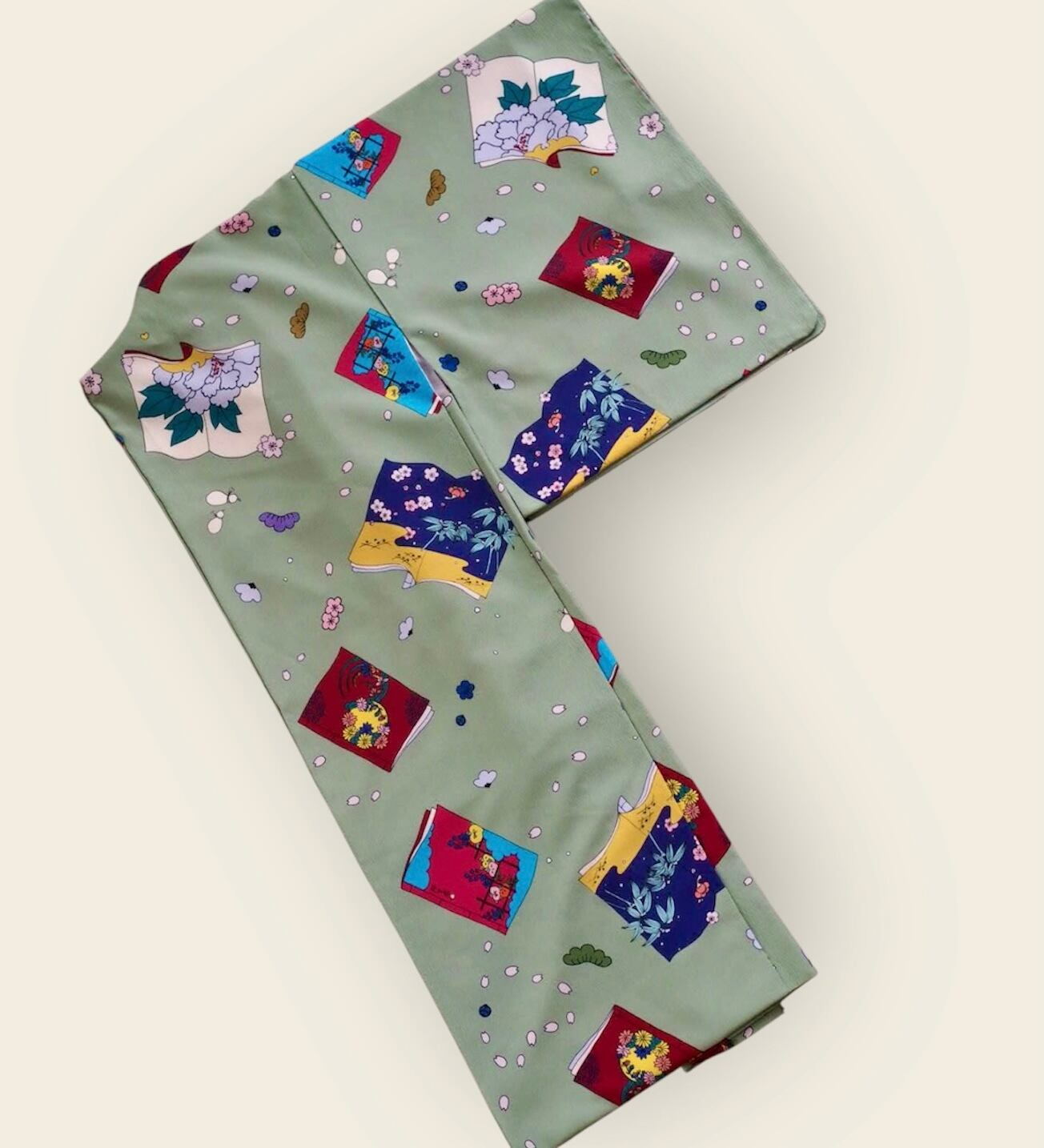 弥生屋オリジナルの冊子文柄の反物で制作した