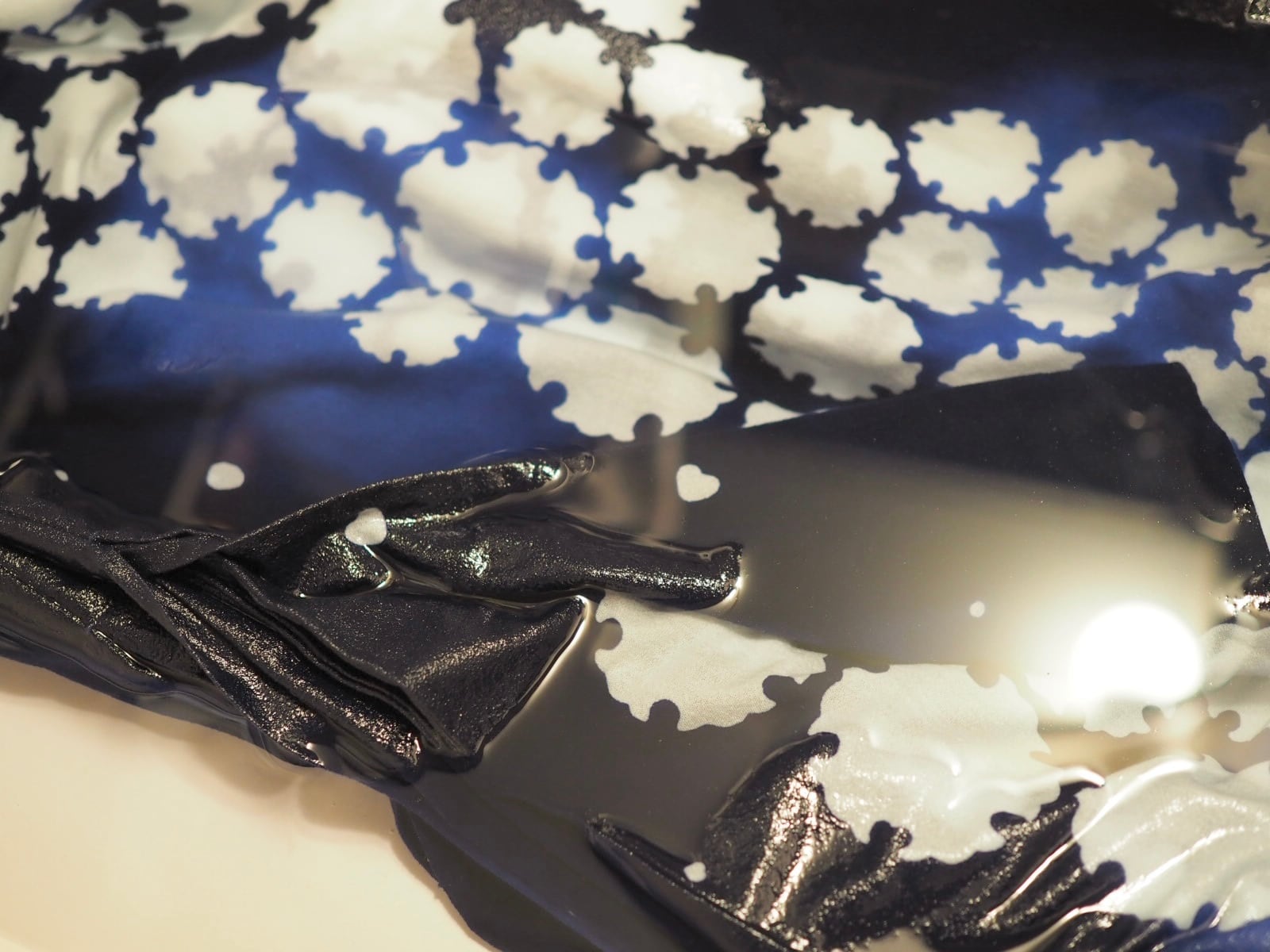 注染は近代的なプリントのように細かい柄がきれいに出るものではなく、手作業ならではの独特の味わいや立体感が感じられる染色方法です。