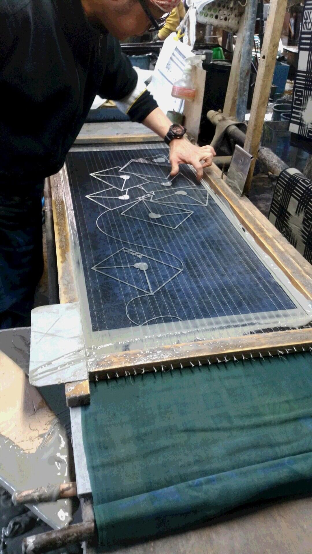 インクジェットや機械プリントと違い、よく見ると約1メートルごとに染めムラ、滲み、すれなど入ることがあります。