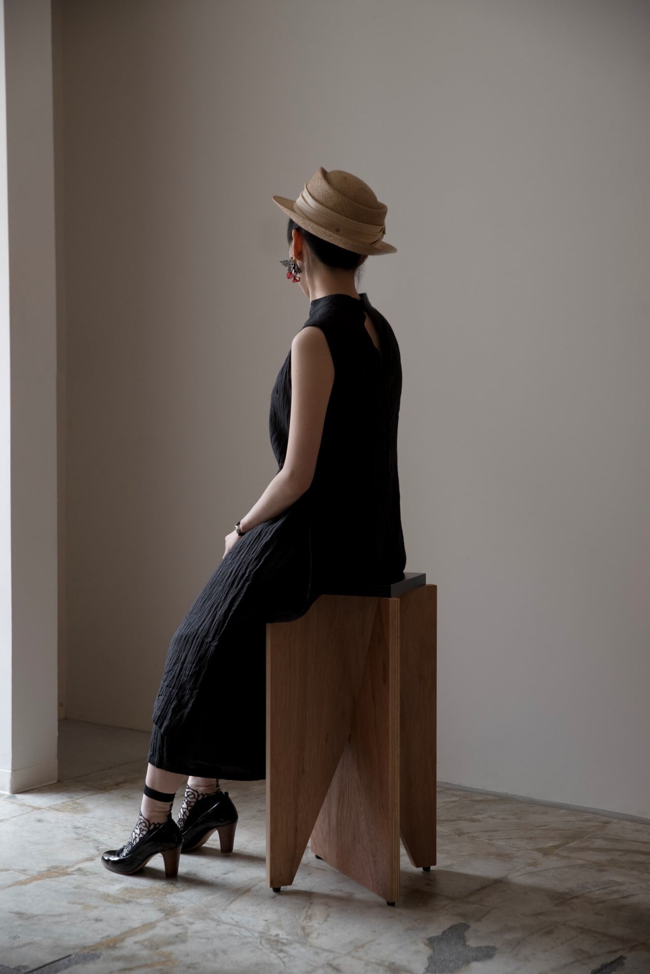 滋賀県の近江ちぢみを使用して制作した、ノースリーブのチュニックです。